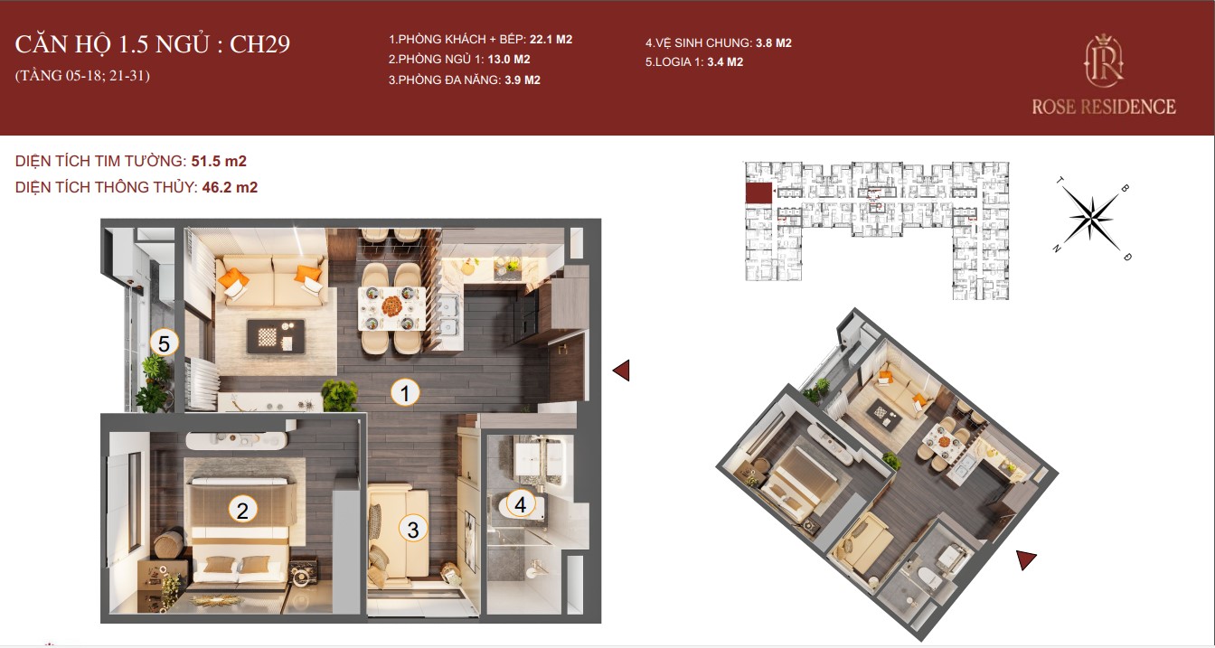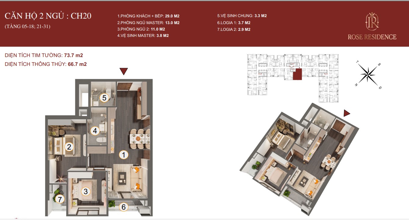 Quý khách có thể tham khảo đầy đủ qua file đính kèm: Mặt bằng chi tiết Toà Rose
