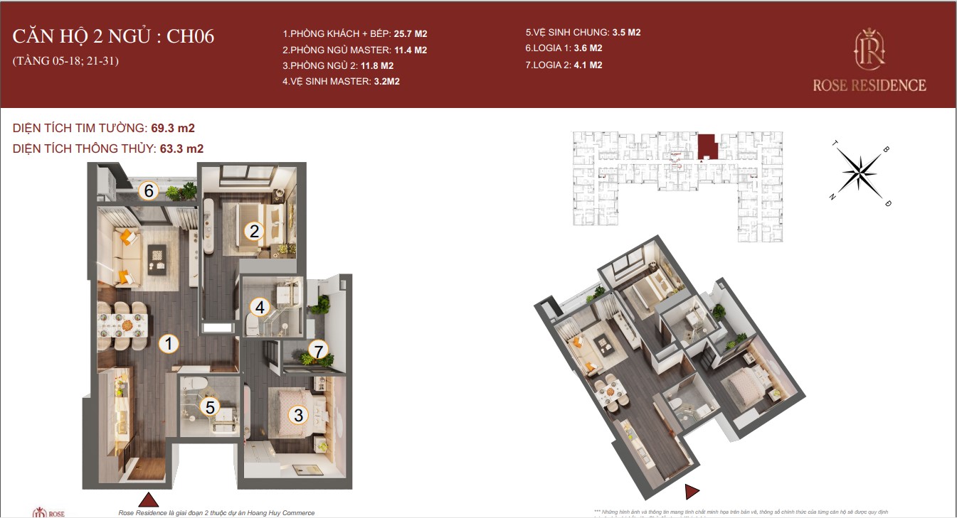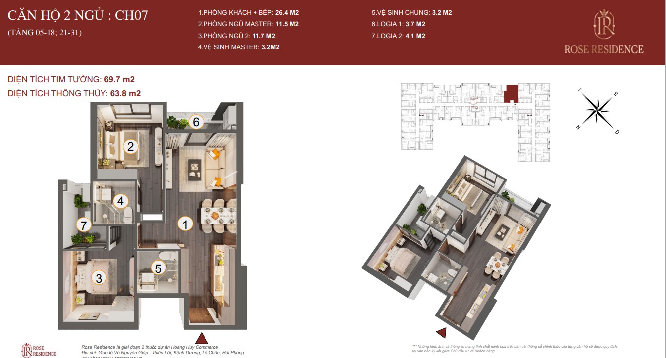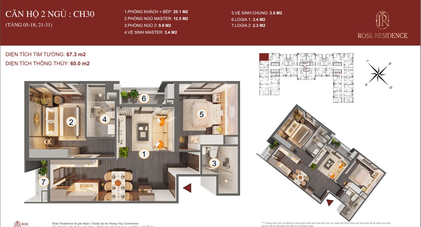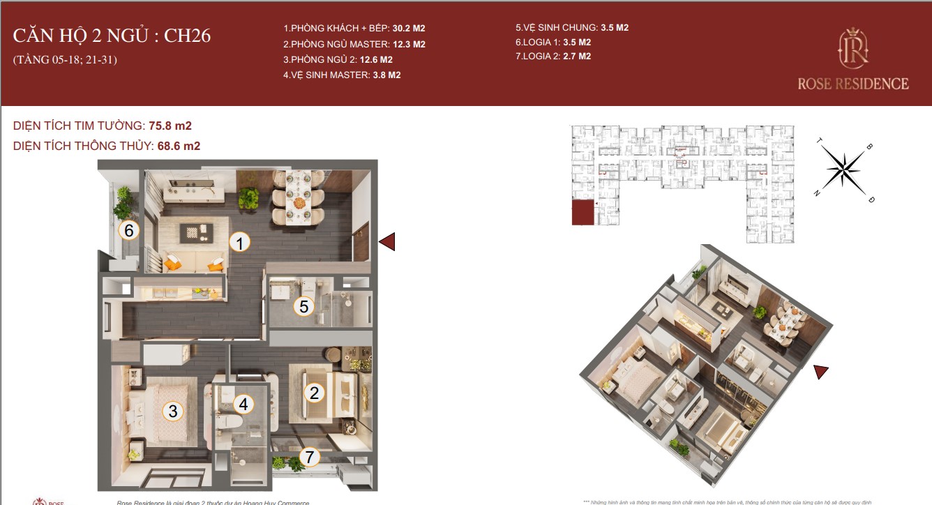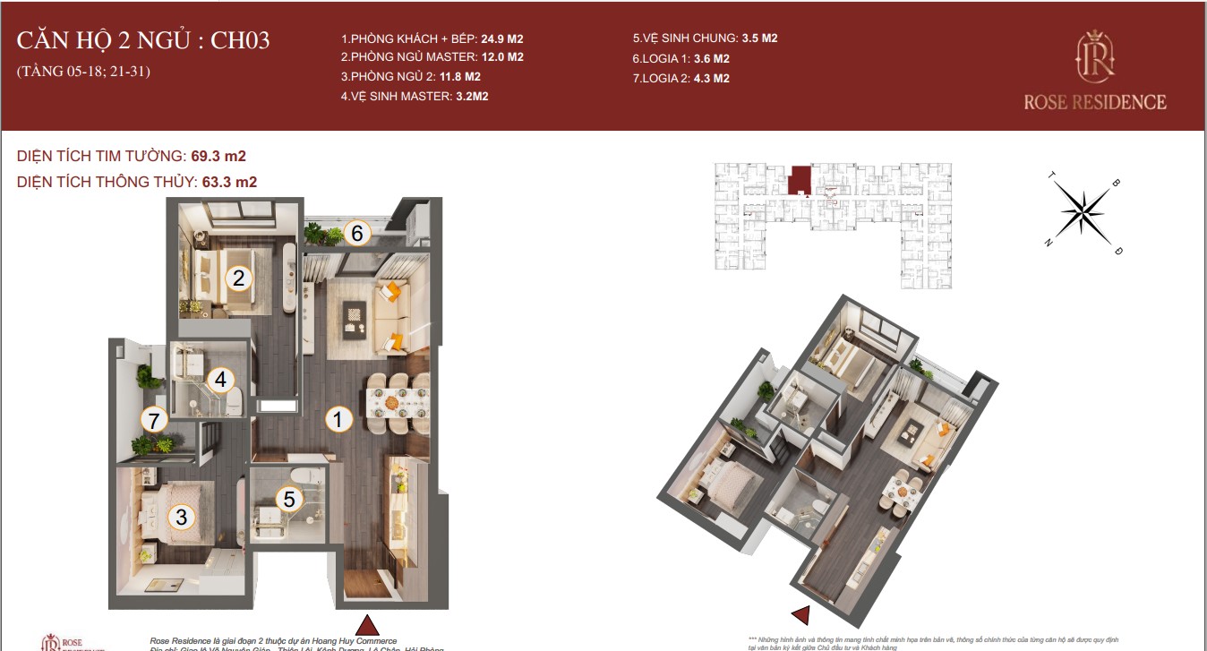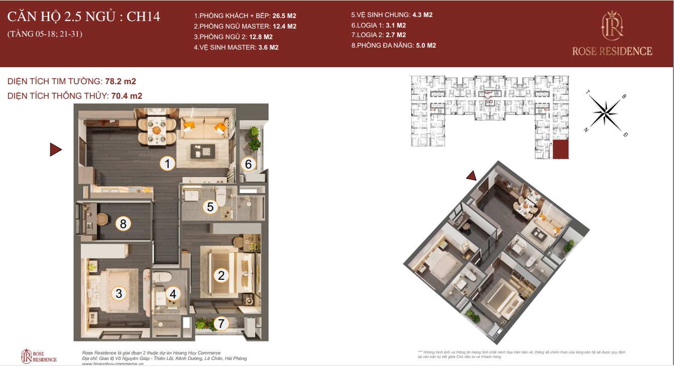 THIẾT KẾ CHI TIẾT MẶT BẰNG CÁC CĂN HỘ TOÀ ROSE RESIDENCE CHUNG CƯ HOÀNG HUY COMMERCE