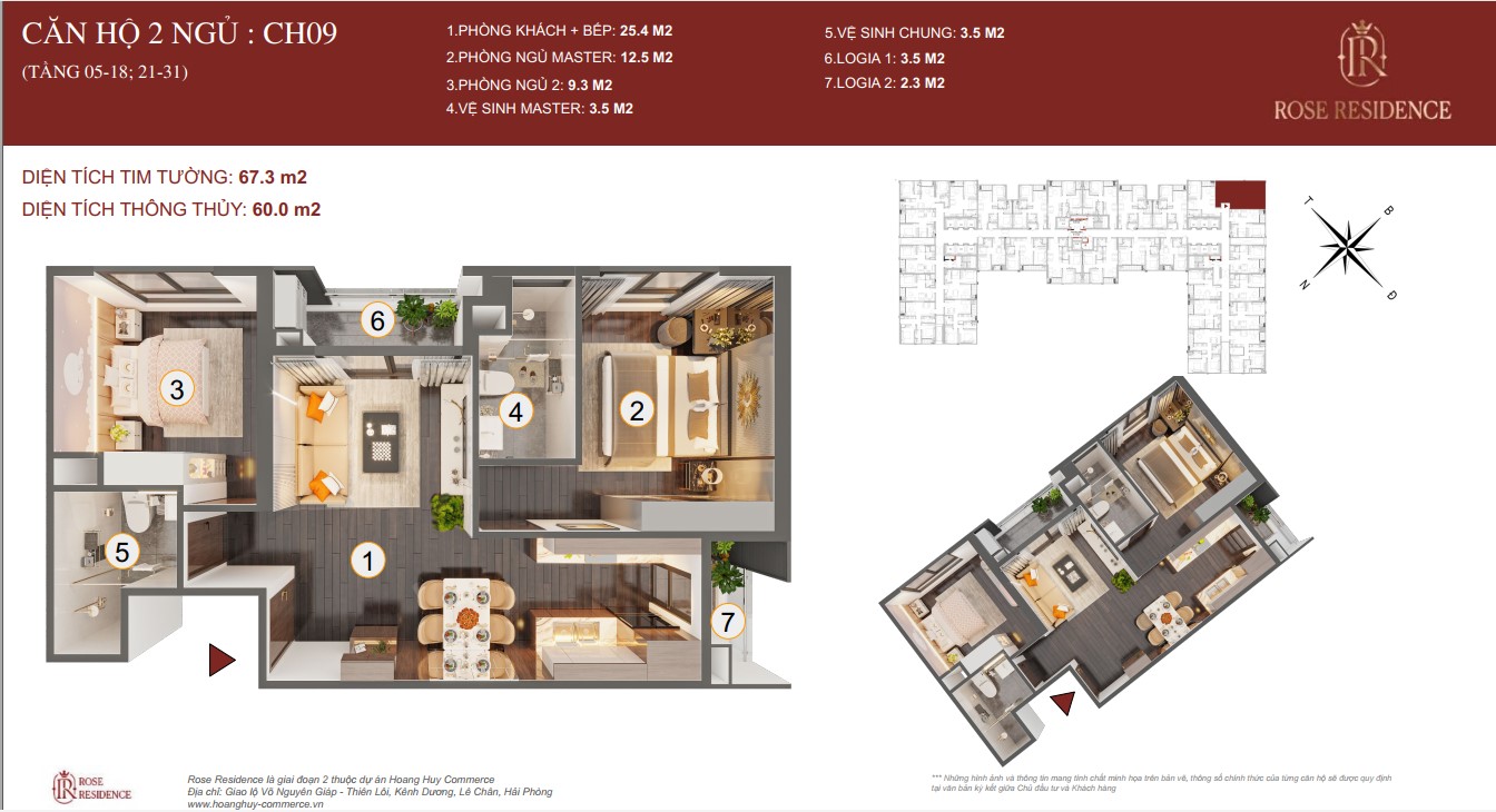 CĂN 2.5 NGỦ TOÀ ROSE HOÀNG HUY COMMERCE GIAI ĐOẠN 2