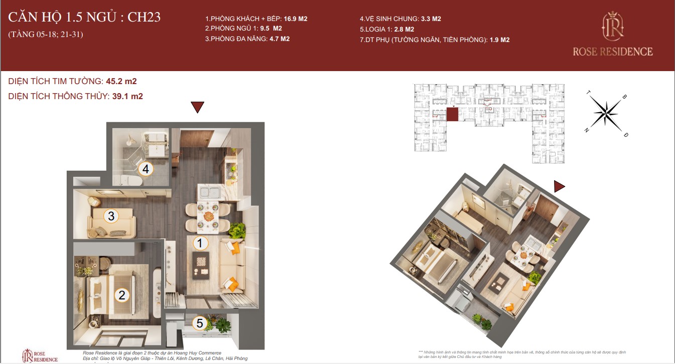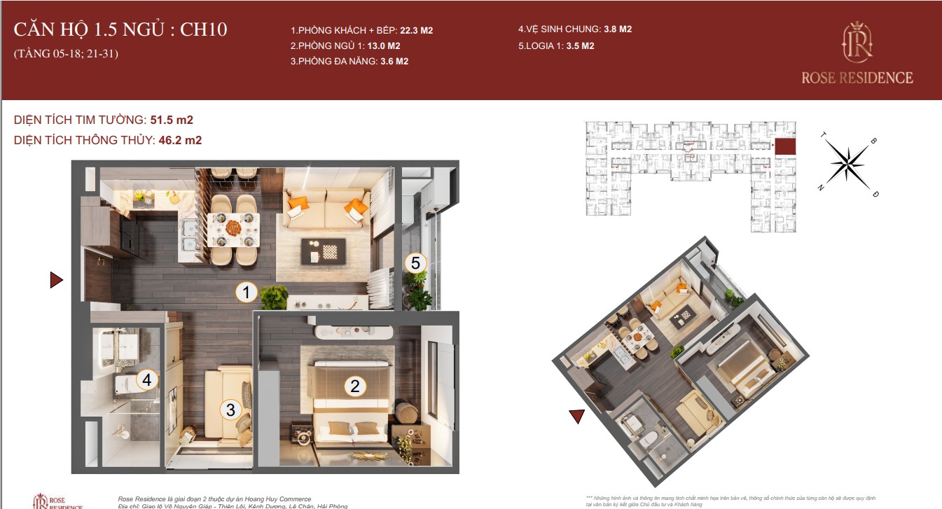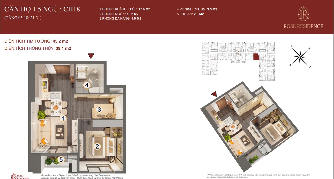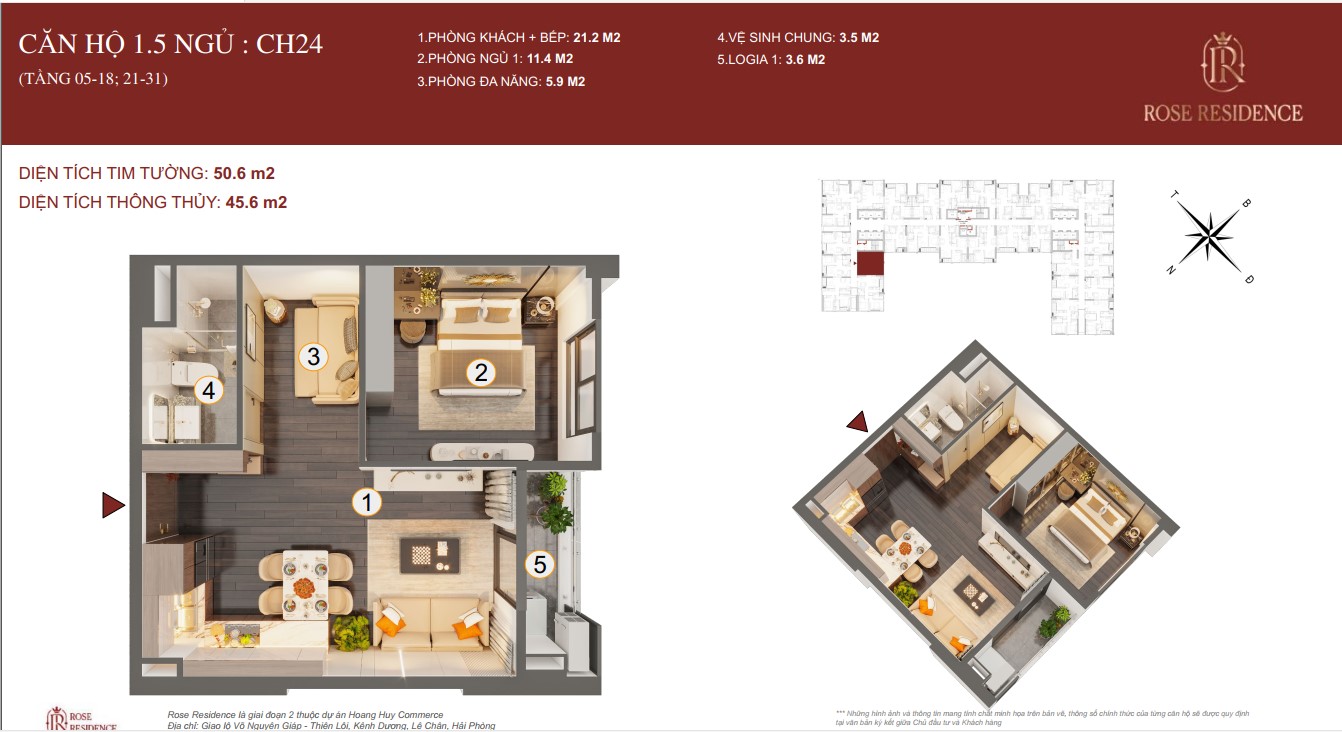 ► CĂN 1.5 NGỦ TOÀ ROSE HOÀNG HUY COMMERCE GIAI ĐOẠN 2