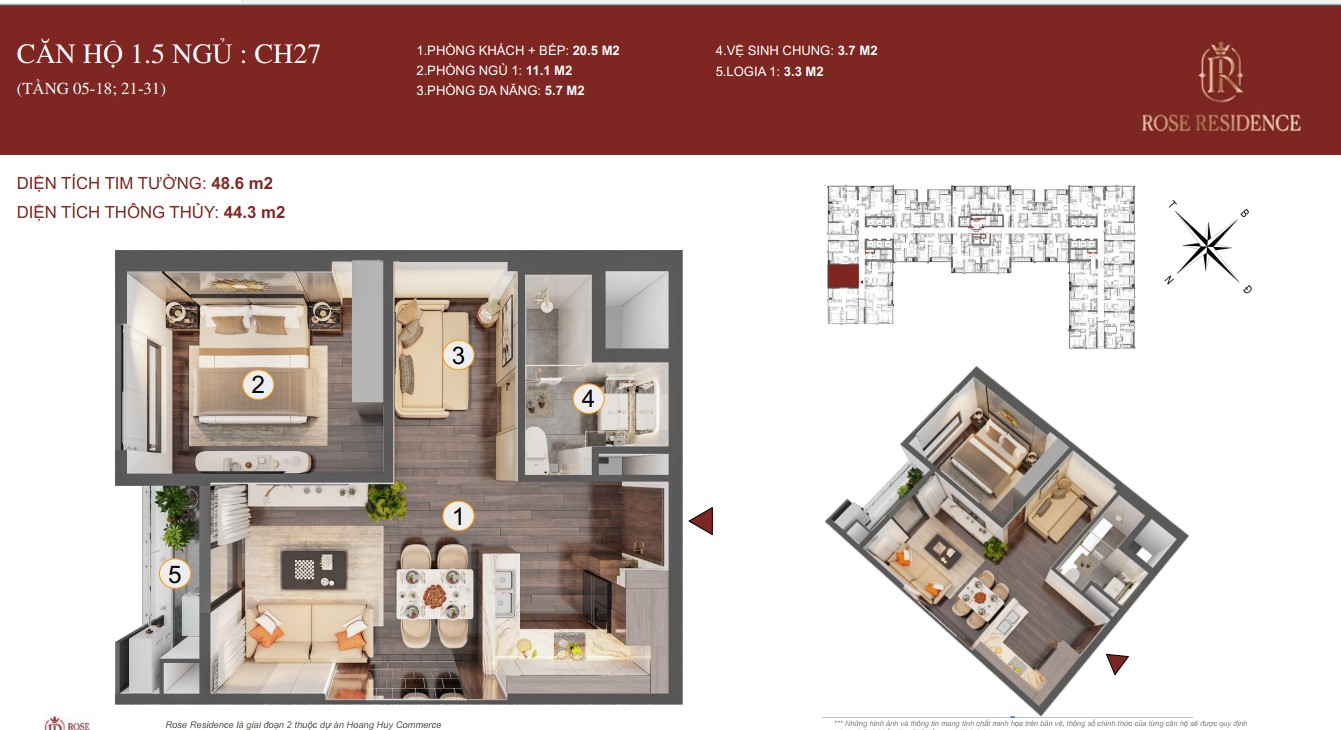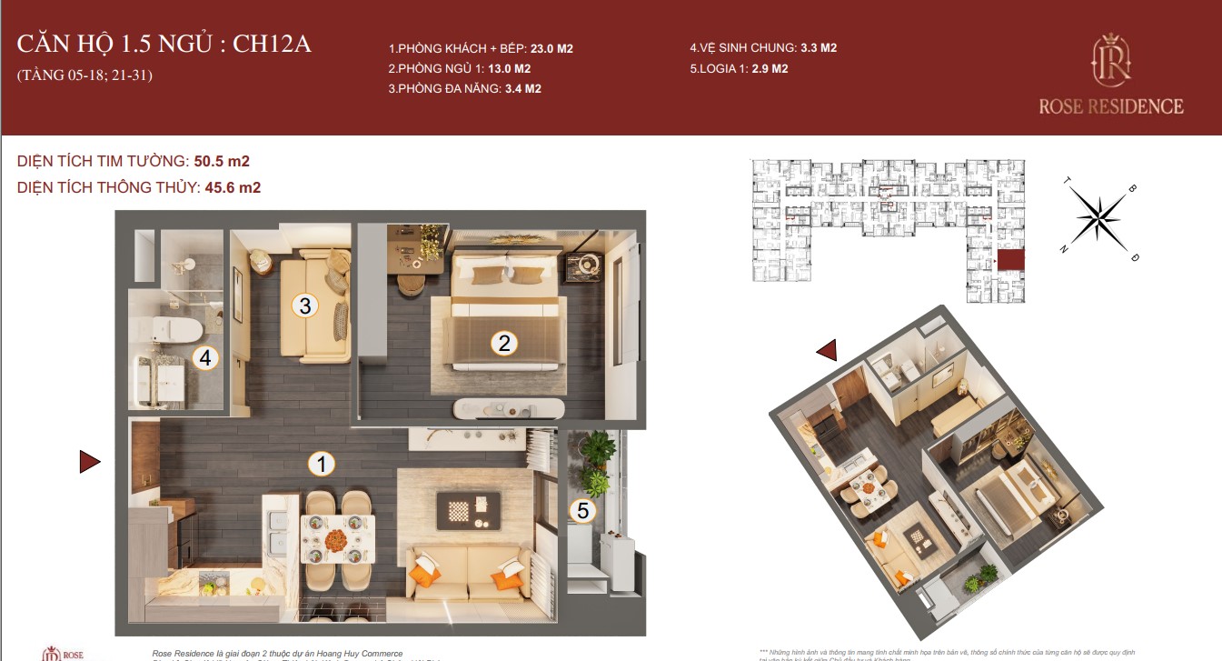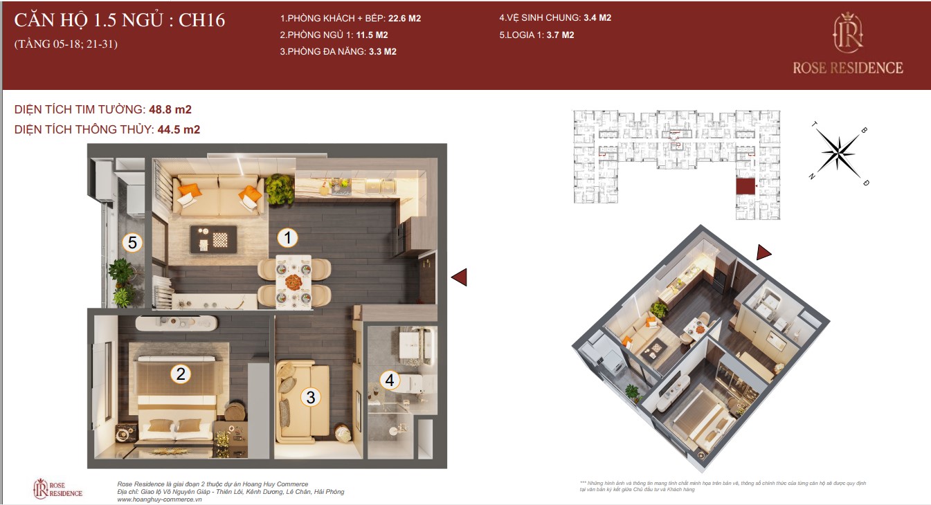 ► CĂN 1.5 NGỦ TOÀ ROSE HOÀNG HUY COMMERCE GIAI ĐOẠN 2